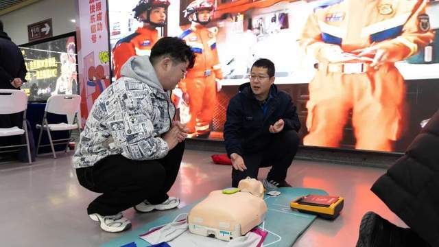 另一边,心肺复苏训练区排起了长队。“手臂要直,按压深度5-6厘米,频率每分钟100-120次……”在模拟人身上,市民们跟着节奏练习,现场还有心肺复苏量化培训系统当场检验学习成果,不少人体验完后感叹“原来一次标准的心肺复苏操作需要消耗不少体力呢!”