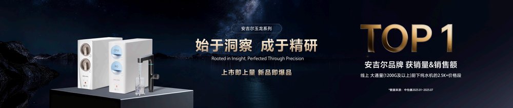 安吉尔玉龙系列自上市以来,凭借优异的产品表现,赢得了市场和用户的广泛喜爱与高度认可。截止2025年8月,玉龙系列上市累计销量突破15万台,且助力品牌在线G及以上)厨下纯水机的2.5K+价格段获得销量&销售额TOP1。玉龙系列展现出的亮眼数据与增长势能,无疑为近日一款旗舰新品的上市奠定了坚实而强势的基调。