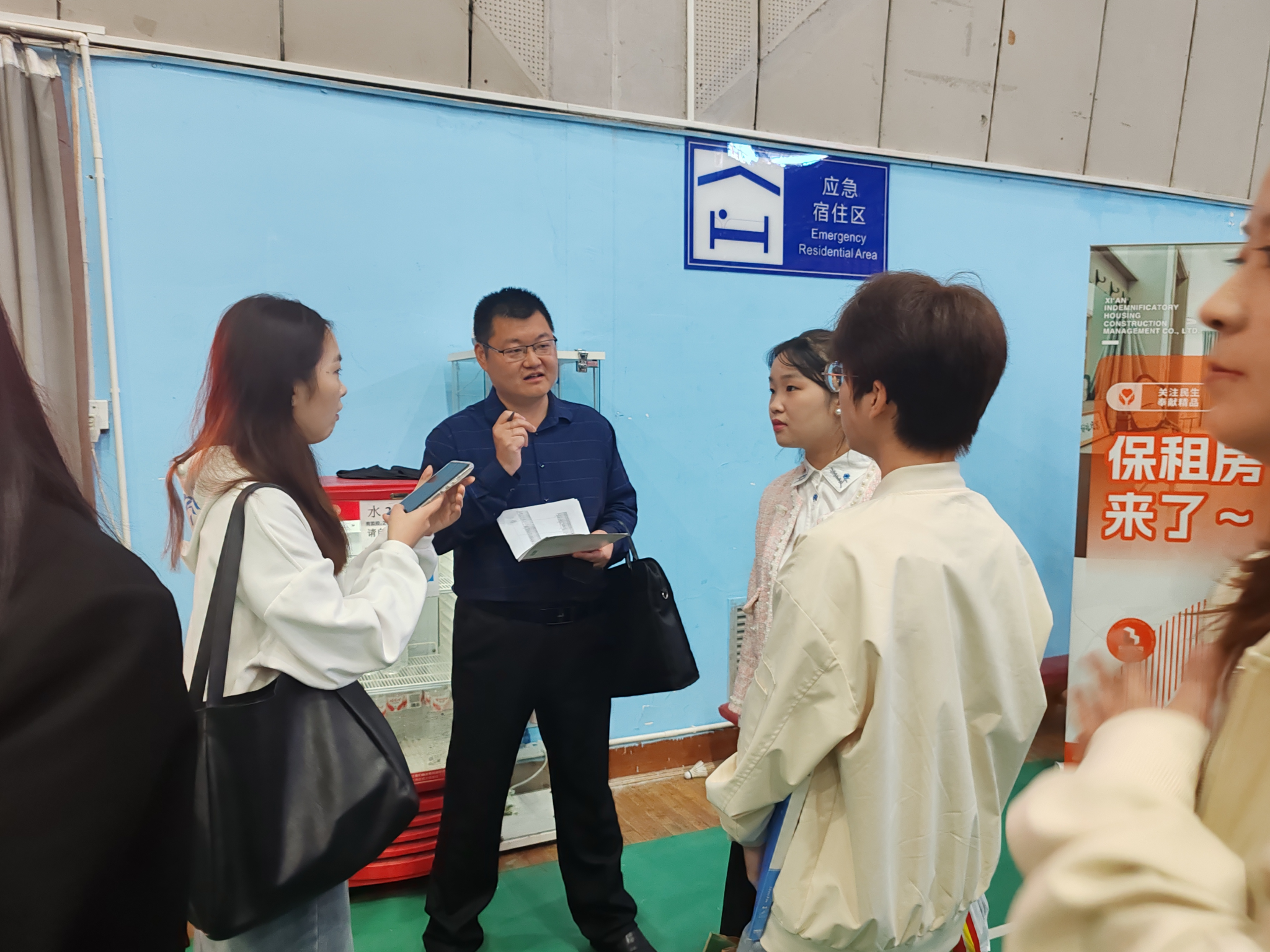 调研过程中,种宇宏逐一走访行业重点用人单位展位,与企业招聘负责人及校友亲切交谈。他详细询问企业招聘需求、岗位要求、薪资福利及行业发展情况,了解企业对我校毕业生专业能力、实践素养的综合评价,并向企业介绍我校学科建设、人才培养特色及2026届毕业生规模与专业分布情况。希望校企双方以人才供需对接为窗口,进一步深化校企合作,建立长期稳定的人才输送与联合培养机制,共同为行业发展培育优质人才。在与毕业生交流时,他关切询问同学们的求职意向、目标岗位及面试进展,倾听大家在求职过程中遇到的困惑与需求。他叮嘱同学们要结合自身专业优势与职业规划,理性选择岗位,主动与用人单位沟通,同时鼓励广大毕业生到西部去、到基层去,到祖国最需要的地方建功立业,强调要树立“先就业、再择业”的正确就业观,积极把握就业机遇,在统筹社会价值的过程中实现个人价值。