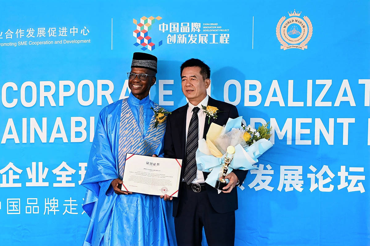 联大主席原新闻发言人吉布里尔?迪亚洛在论坛上发言,并为湖州红木房酒店管理有限公司颁发了“国际行业影响力品牌奖”荣誉奖杯。