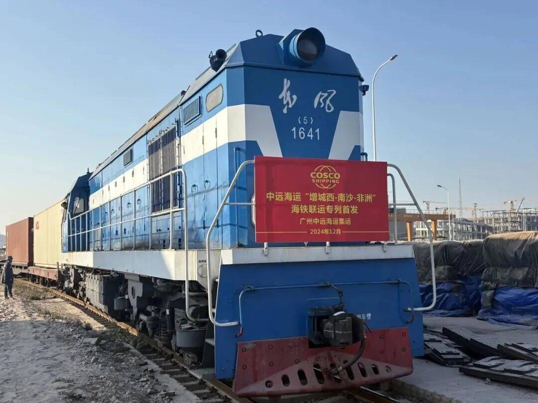 增城铁路物流园组织开行了粤港澳大湾区首趟“增城西-南沙(盐田)-非洲”海铁联运“班列+班轮”,为广货出海提供了更加高效便捷的物流新通道。